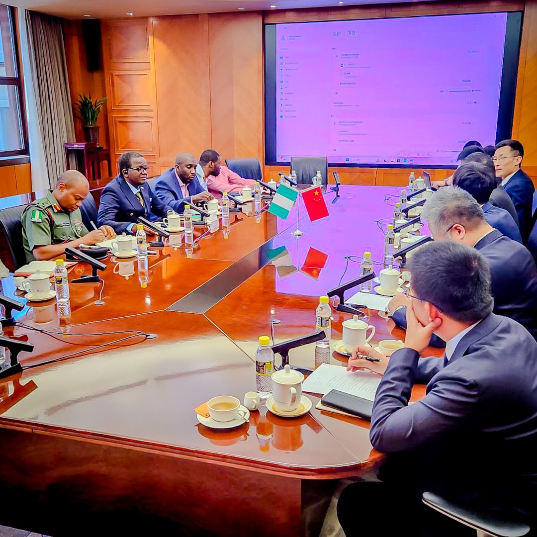 In a significant move to enhance Nigeria’s defence capabilities, the Honourable Minister of State for Defence H.E. Dr. Bello Muhammed Matawalle MON is participating in a high-level security meeting with a leading Chinese manufacturer of advanced anti-terrorism and high-tech defence equipment. The meeting took place in China and aimed to strengthen strategic defence ties between Nigeria and China. This was contained in a statement signed by Jeff Amaka Promise, For: Director, Information and Public Relations.