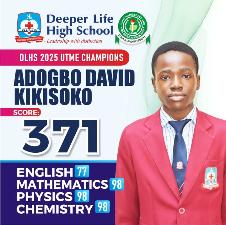 Adogbo David Kikisoko, a student of DLHS, scored a total of 371 in the four subjects he entered for the 2025 UTME.
