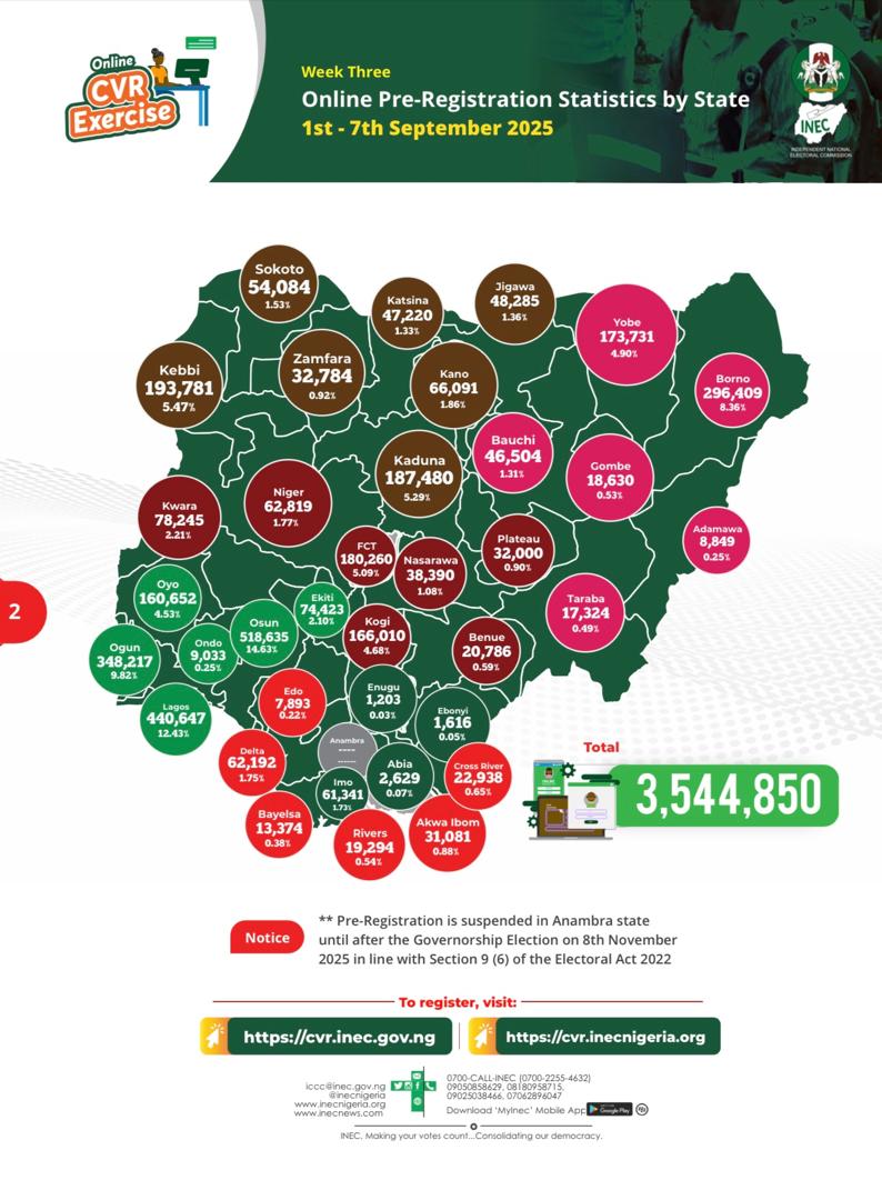 According to the INEC Daily Bulletin, National Commissioner and Chairman of the Information and Voter Education Committee, Sam Olumekun mni, who announced in Abuja on Friday, 5th September 2025, in a press statement, explained that the decision is in line with the Commission’s policy ahead of major off-cycle elections, as was done before the Edo and Ondo governorship elections in 2020 and more recently in Anambra State.