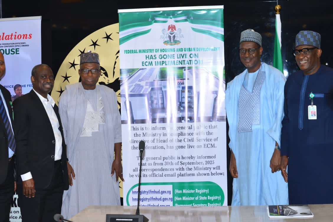 Minister of Housing and Urban Development, Arch Ahmed Dangiwa, has officially commissioned the Ministry’s Electronic Content Management System (ECMS), marking a significant step toward digital transformation and enhanced service delivery. This was contained in a statement signed by Badamasi S. Haiba, Fsca, Director, Information and Public Relations.
