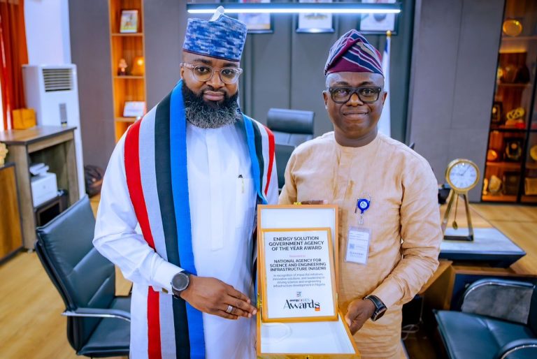 The National Agency for Science and Engineering Infrastructure (NASENI) has been honoured with the Energy Solution Government Agency of the Year Award by Energy Times, in recognition of its impactful initiatives, innovative solutions, and leadership in advancing science and engineering infrastructure in Nigeria.
