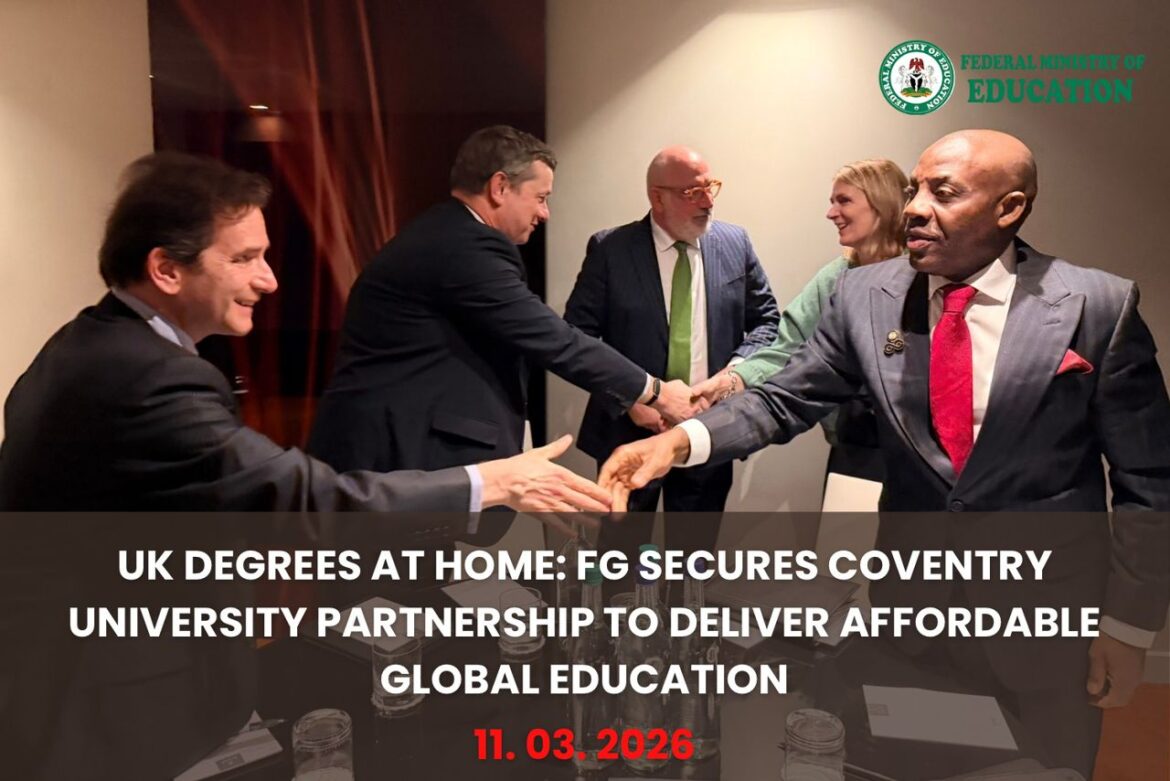 The Federal Government is advancing plans to establish a Coventry University campus in Nigeria through a Transnational Education (TNE) partnership aimed at expanding access to globally recognised degrees. This was contained in a statement released by Mrs. Boriowo Shade, Director, Information and Public Relations.